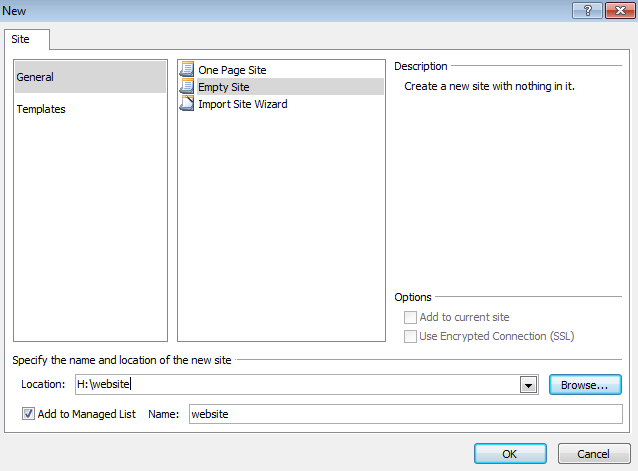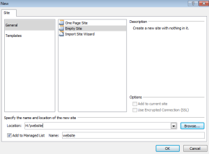 - You are to make an empty website - use the New site menu